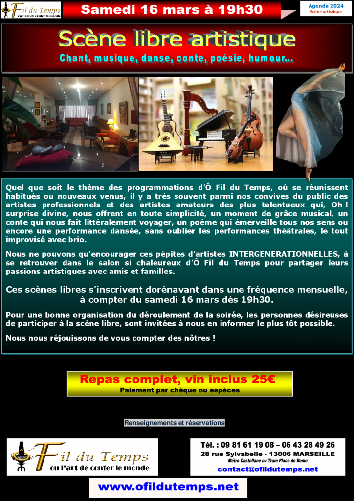 Ces scènes libres instaurées d'elles-même par les convives d'Ô Fil du Temps, sont dorénavant mise à l'honneur une fois par mois.