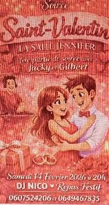Bientôt la St Valentin, alors avec ou sans Valentine ou Valentin,je vous propose une soirée dansante avec repas en 2 temps :