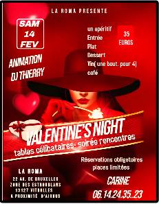 VENEZ FETER La ST VALENTIN A LA ROMA VITROLLES LE SAM 14 FEVRIER . UNE SOIREE PARSEMEE DE BELLES RENCONTRES AVEC DES TABLES CELIBATAIRES
